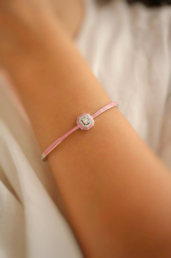دستبند نقره زنانه بنگل امرالد صورتی